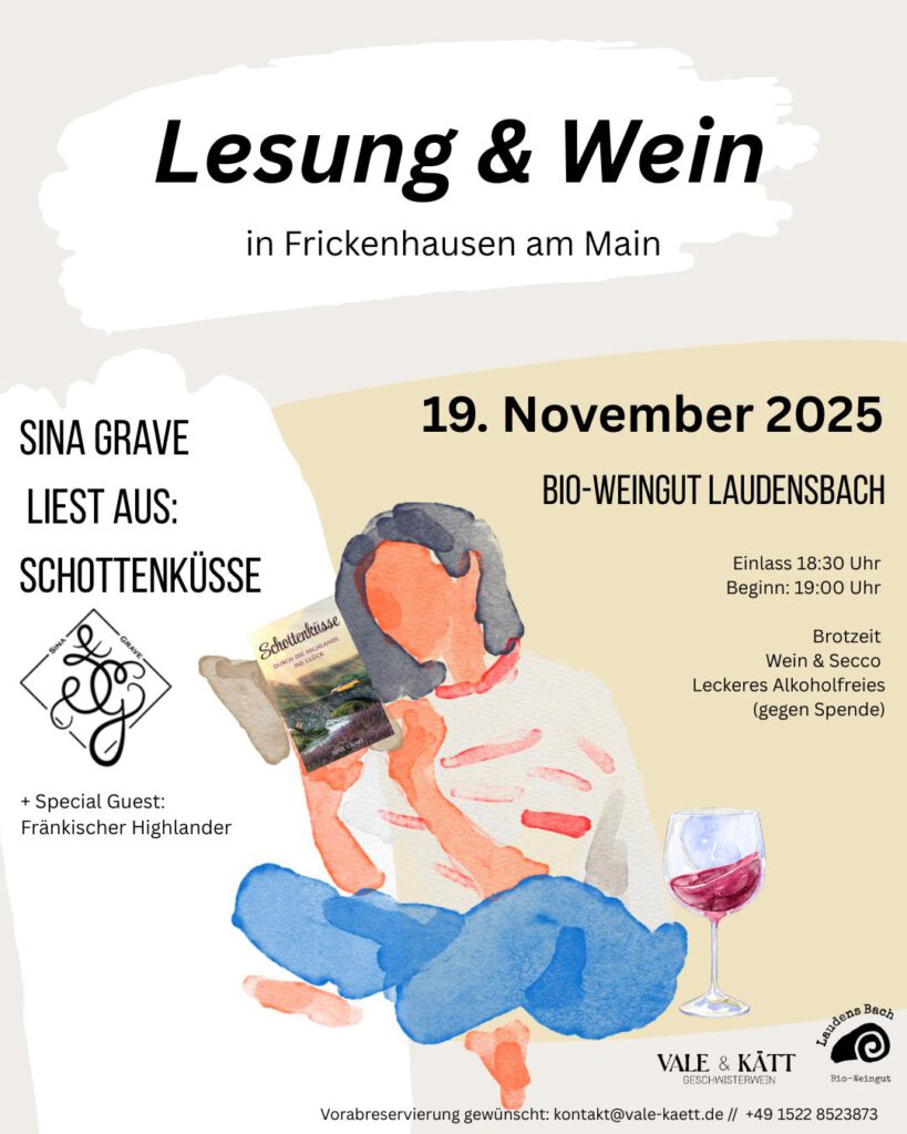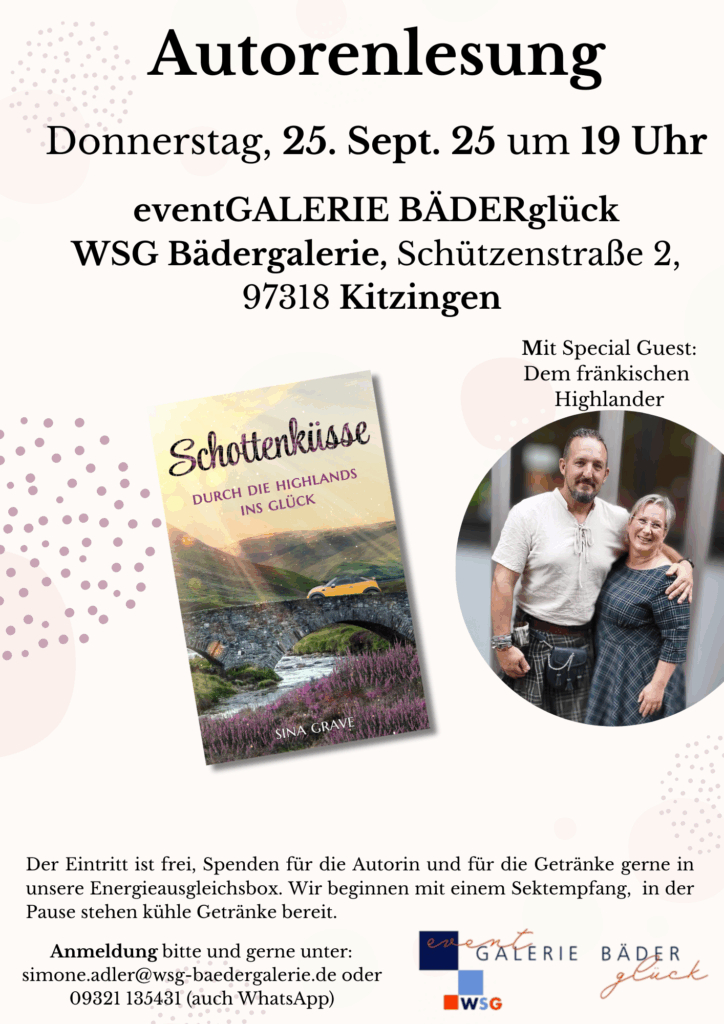 Lass dich von mir nach Schottland entführen – bei meinen Lesungen mit meinem neuen Buch Schottenküsse – Durch die Highlands ins Glück.